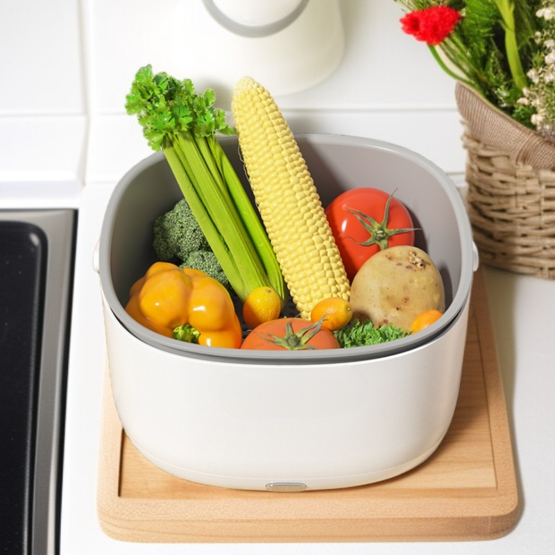 ● 세척 뿐 아니라 살균까지 동시에 해결해주어 위생 관리에 탁월하며, 세척 후 과채 본연의 맛과 영양을 그대로 유지합니다.